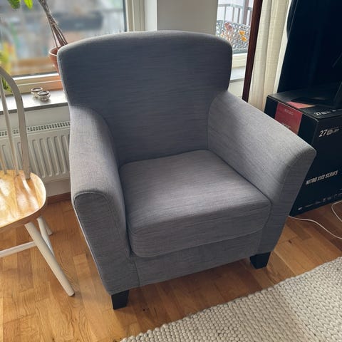 Fåtölj i fint skick från IKEA Stockholm, med ny grå klädsel från Bemz.