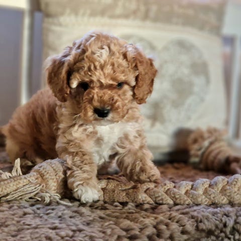 Nu har vi en fantastiskt superfin kull med Cavapoo F1 valpar till salu i den härliga fägen Creme . Det finns 3 🐶🐶🐶 sötnosar att välja mellan 2 hanar och 1 tik som redan nu går att tinga . Mamma är en renrasig Cavalier king charles spaniel Ruby och väger 8 kg och pappa är en vit dvärgpudel och väger runt 3,5 kg . Båda föräldrarna har lugna fina temperament, är friska och sunda.Godkända för avel utav veterinär .