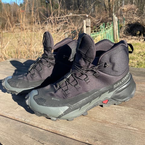 läder och gummi över tåboxen och bak över hälen. Kängan