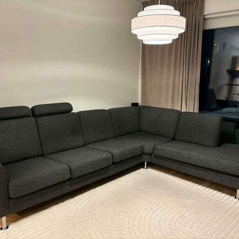 Med divan höger och schäslong till vänster.
