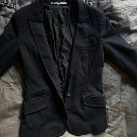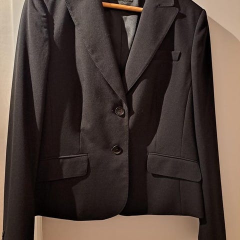 Mörkblå kavaj i merinoull i fint skick, inga synliga slitningar. Passform rak, något insvängd i midjan.