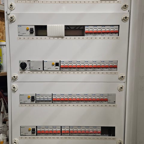 Oanvänd Hager elcentral med jordfelsbrytare och 14x10A