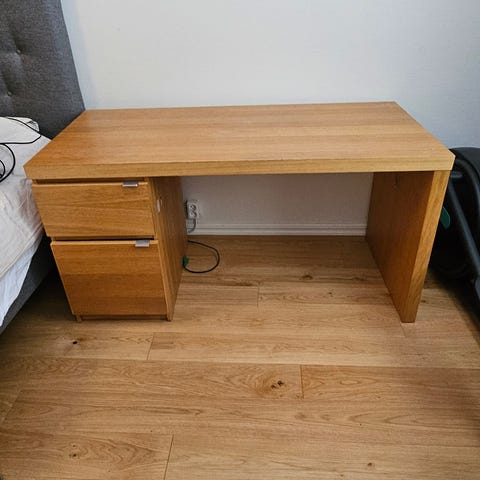 En tunn rispa på ca 1 dm till vänster på skrivbordet. I övrigt inga synliga skador.