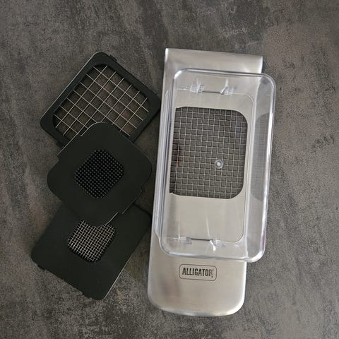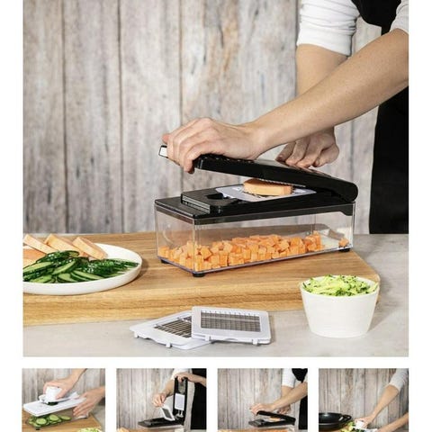 Den kan snabbt och säkert hacka lök, paprika, frukt och grönsaker i en enda rörelse.