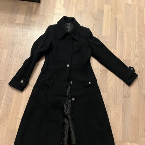 H&M kappa för dam i storlek S. Kappan är blå och tillverkad i ullblandning enligt märkning. Modellen är dubbelknäppt med dekorativa knappar framtill och har krage samt framfickor. Passar som ytterplagg under svalare väder.