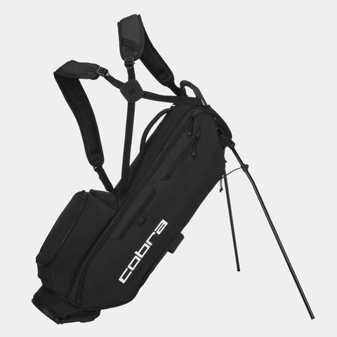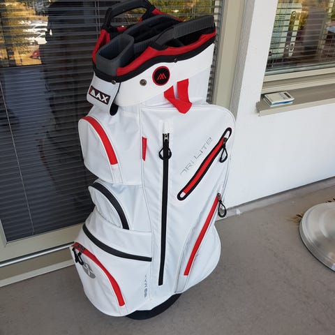 Big Max Dri Lite Hero golfbag ståbag i svart med röda detaljer. Väskan har benställning för att kunna stå stabilt på marken och flera fickor med dragkedja för förvaring av tillbehör. Topp med flera fack för separering av klubbor samt bärrem för att kunna bäras på axeln. Materialet är vattenavvisande Dri Lite-konstruktion anpassad för golfspel i varierande väderförhållanden. Synligt använd men alla blixtlås samt benstöd funkar prima.
