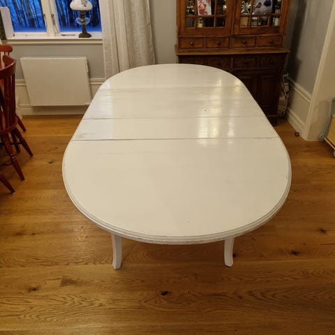 Tyvärr inga fungerade klaffar m fixas med konsoler el smal träregel som sticks genom bordet undertill.