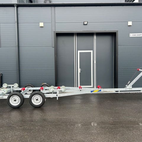 Bålsta‑Släpet LGF4000TS är en robust boggie‑trailer utrustad med extra kraftfulla heavy‑duty-däck, byggd för en imponerande lastvikt på 4000 kg. Den stabila Tipp‑vaggan med 26 rullar och justerbara vinschtorn gör sjösättning och upptagning av stora båtar enkel, säker och smidig varje gång. Perfekt för båtägare som vill ha pålitlighet, komfort och precision vid varje sjösättning.