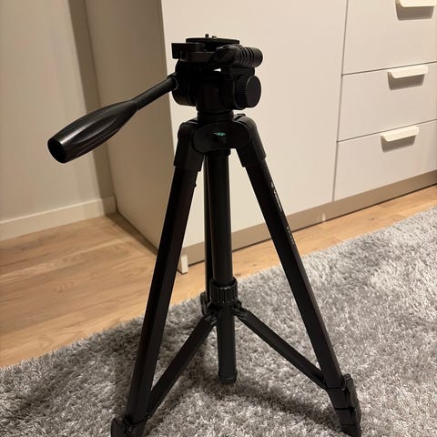 Studiokit med 2 paraplyer, 2 tripoder och 2 klämfästen. Paraplyerna har en svart och silverfärgad utsida som kan tas bort, samt en vit insida som kan användas för mjukare ljus. Stativen kan nå upp till 2 meter. Ett av paraplyerna är inte i sin ursprungliga form men fungerar perfekt.