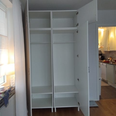 Ikea garderob. Skåpet har en klädstång för upphängning av kläder samt flera utdragbara nätkorgar för förvaring av exempelvis kläder och accessoarer. Passar som förvaring i sovrum, hall eller klädkammare.