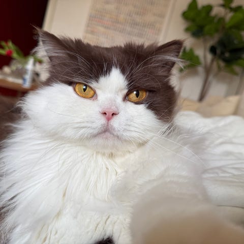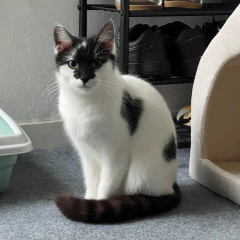 Hej! Chilli är en social och "pratig" katt som jag tyvärr behöver omplacera. Han har ett behov av att det händer saker och trivs inte att riktigt i lägenhet. Liten till växten med skölpaddsteckning.
