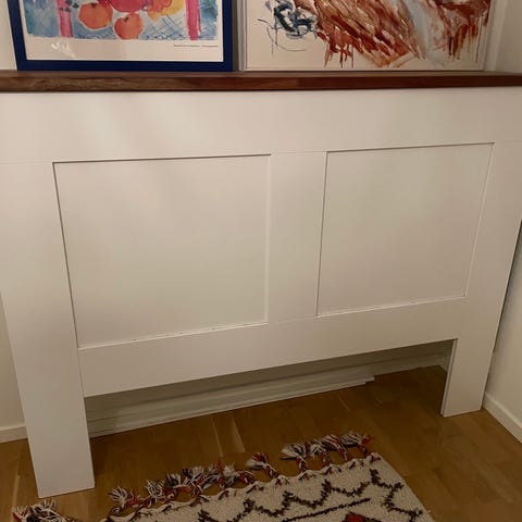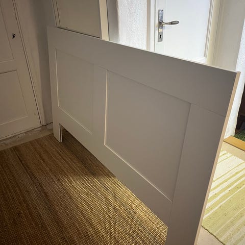 IKEA sänggavel i vit färg. Modellen BRIMNES. För 180cm säng men funkar väl till 160 då jag haft det.