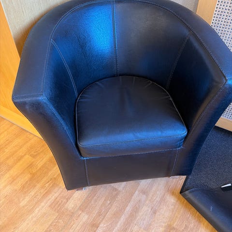 Fåtöljen köptes begagnad i höstas för att den var go att sitta i. Kunde dock använt det sunda och insett där och då att den skulle vara för stor för vårt lilla hus.