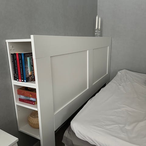 Är delvis ihopmonterad. Finns i Visby. Nypris 3495 utan madrasser.