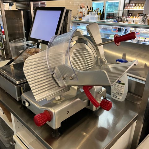 Skärmaskin för kött, en köttskivare i full fungerade form och helt ny, lite smutsig bara då den varit i lagret men annars felfri. Pris kan diskuteras vid snabbköp
