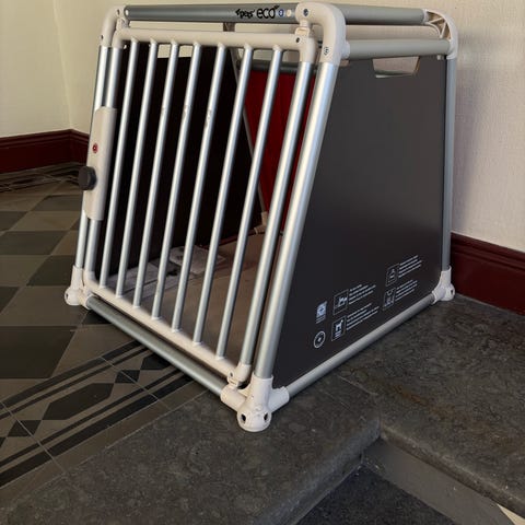 Går att öppna på kortsida men även långsida. Säljer då min hund fått större bur