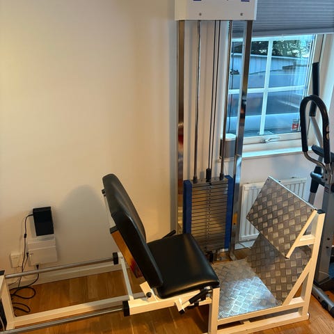 Mycket skön och stabil benpress tillverkad för kommersiellt bruk. Går även att dela fotplattan för att träna var ben för sig.