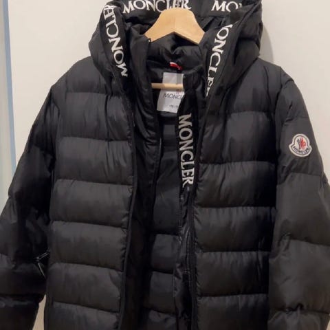 Svart Moncler dunjacka i lång modell, storlek 3. (M).