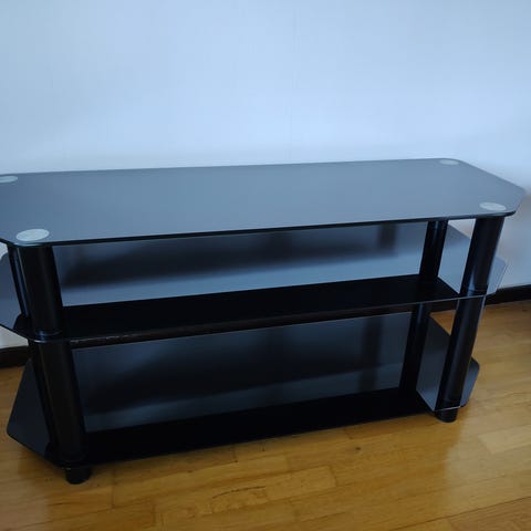 IKEA Vittsjö tv-bänk i svart metall med hyllplan i glas och metall. Mått ca 100x36x53 cm.