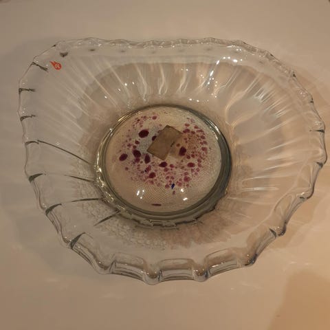 ung och massiv rektangulär kristallvas med mörk innerkärna och tydlig originalgravyr: