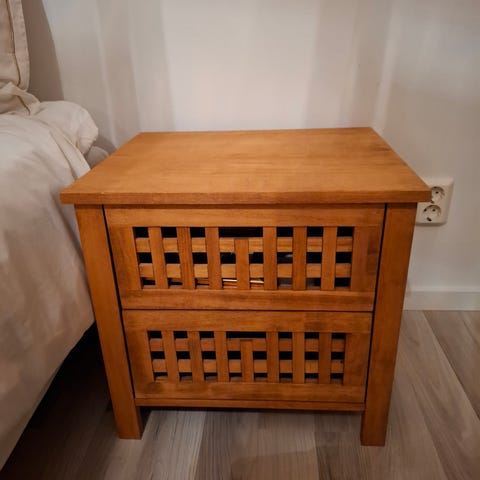 Sängbord i trä och metall