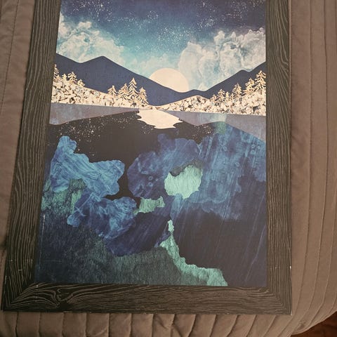 Tavla vattenfall i skog med träram