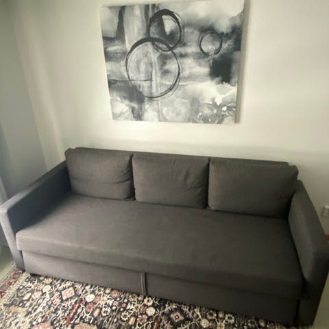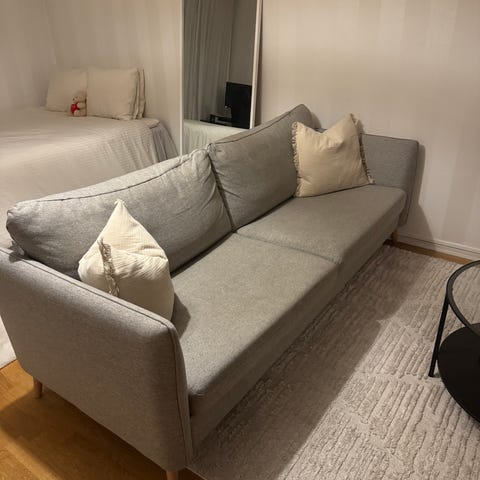 Fint skick o sparsamt använd i övernattningslägenhet. Smart bäddfunktion med riktigt bra säng. Bra förvaring i armstödet. Bäddmått 200x160. Bäddmadrasss ingår om man vill. Hämtas i Täby.