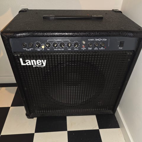Laney Richter RB1 basförstärkare med frontmonterad högtalare och kontrollpanel upptill. Förstärkaren har flera reglage för volym och tonjustering samt ingång för instrument. Lämplig för övning och mindre sammanhang där kompakt basförstärkare behövs.