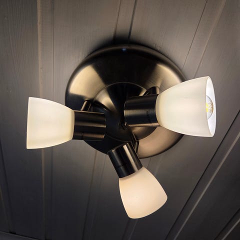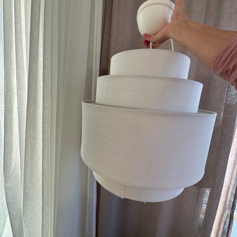 Mio taklampa i textil med flera skärmar i ett trappstegsliknande utförande. Lampan har en brun nyans och är avsedd för inomhusbruk, exempelvis i vardagsrum, sovrum eller matplats. Passar för montering i tak med standard lampsladd och lamphållare beroende på medföljande upphängning och sockeltyp.