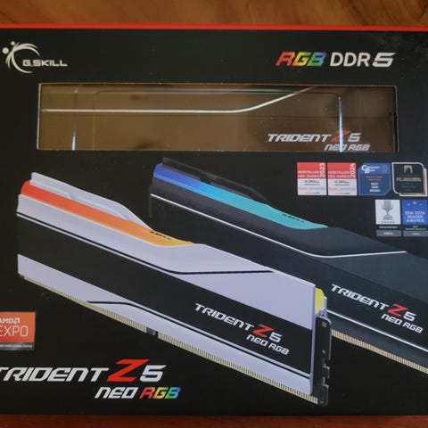 Säljer ett oöppnat ram kit G.Skill Trident Z5 Neo RGB DDR5-minne. Nypris: 7390kr