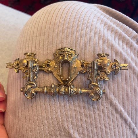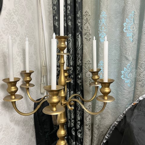 Mässingsljusstake för takupphängning med två armar. Lite oputsad men blir säkert fin efter puts. Inköpt på 1990 talet. Ljusstaken väger 1,5 kg.
