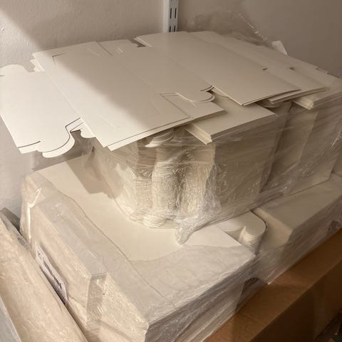 Lådorna (ett tusental) är redan färdigvikta och redo att användas på en gång.