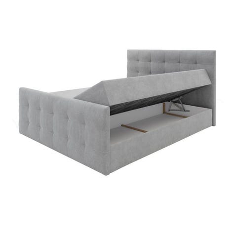 Vid huvudändan finns integrerade öppna hyllor för extra förvaring av böcker eller andra mindre saker.