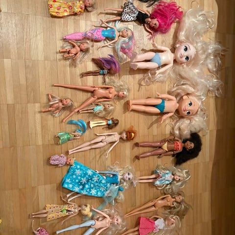 Dockorna och kläderna är i okej skick, tjejerna har lekt bra med dem.