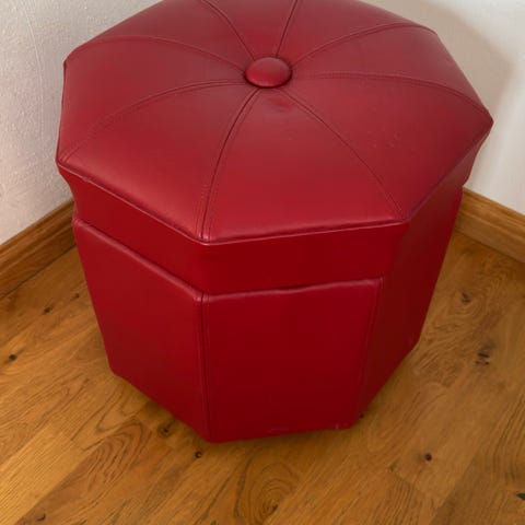 Röd sittpuff 30x60cm, passar vid sängen eller i hallen.