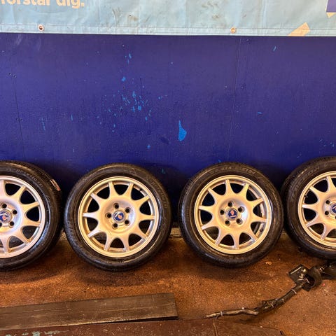 Säljer 4 st Saab 9-3/9-5 Sommardäck på aluminiumfälgar från Svenska Fälg.