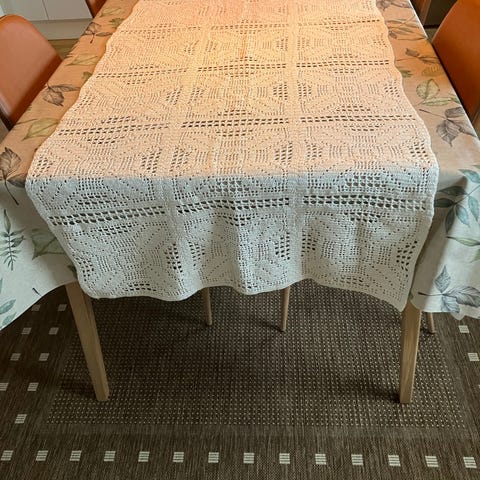 Passar som bordsduk eller dekoration på mindre bord, byrå eller sidobord.