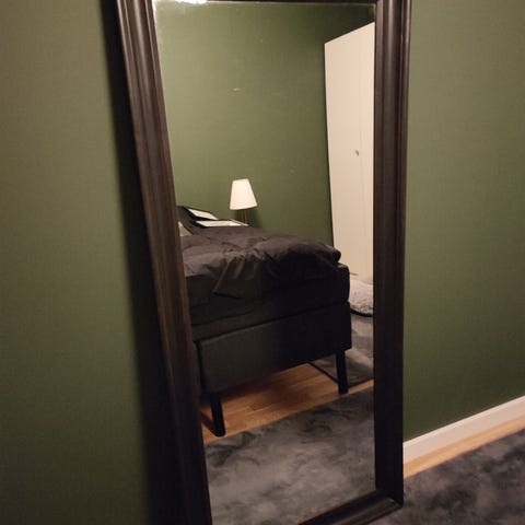 Ellos spegel i stor rektangulär modell med bred, profilerad ram i silverfärg. Spegeln är avsedd för väggmontering och passar exempelvis i hall, sovrum eller vardagsrum. Den stora spegelytan ger god helkroppsspegel och kan även användas för att skapa en känsla av rymd i rummet.