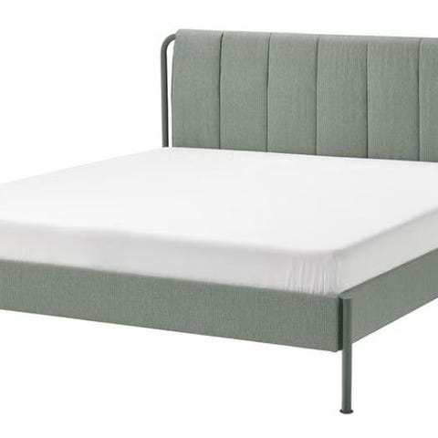 IKEA sängstomme 180x200 cm grön textil med 2 ribbotten 90x200 cm