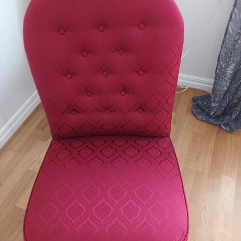 Väldigt charmig prinsess-stol. Sitsen är ca 38/29cm bred.