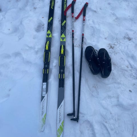 Längskidor Tecnopro och längdskidstavar Fischer