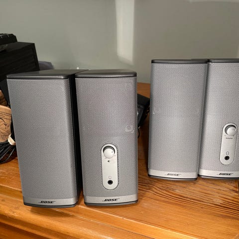 Bose Companion 2 datorhögtalare i grå färg. Systemet består av två högtalare, varav en med volymkontroll och hörlursuttag på framsidan. På baksidan finns anslutningar för ljudingång och sammankoppling mellan högtalarna. Passar för användning med dator, laptop eller annan ljudkälla med analog ljudutgång. Levereras med strömadapter och fasta anslutningskablar enligt bilder.