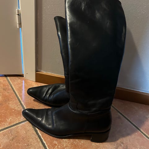 Knappt använda skinnstövlar med snörning; passar därför både smala och breda vader.