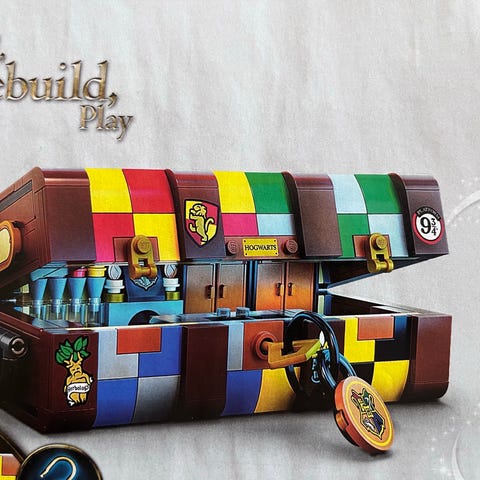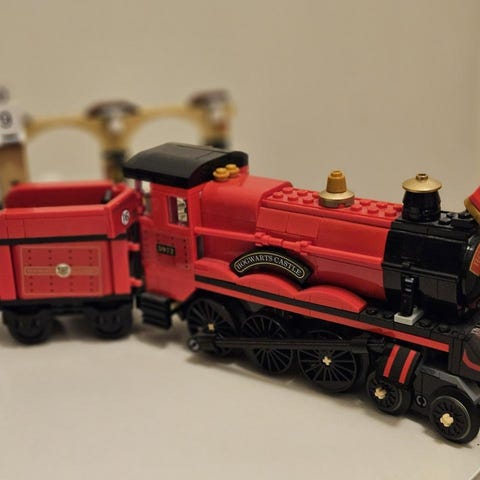 LEGO Harry Potter tågset Hogwarts Express. Byggset med rött ånglok, passagerarvagn, plattform och minifigurer från Harry Potter-universumet. Setet innehåller rälsdelar, perrong med klocka och skyltar samt tillbehör kopplade till resan till Hogwarts. Lämpligt för bygglek och som samlarobjekt för Harry Potter- och LEGO-intresserade.