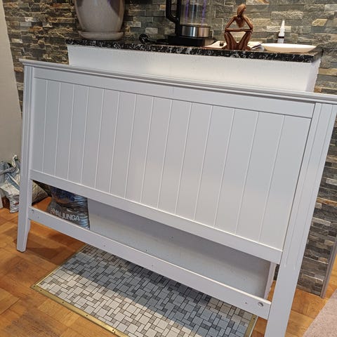 Säljer en sänggavel i masiv trä, passar till dubbelsäng med en mått på 180cm.