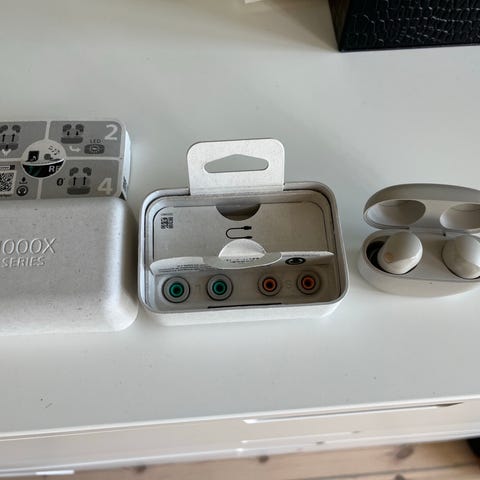 I princip nya Sony trådlösa in-ear hörlurar i svart färg. Hörlurarna levereras med laddningsetui, utbytbara öronproppar i flera storlekar samt USB-kabel för laddning.