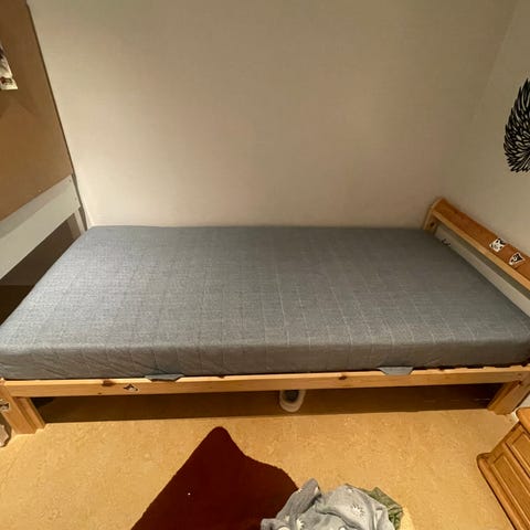 Like new Järnudda single ben / twin bed madrass/mattress from IKEA. Never slept on. Used with aother single bed as a bedframe under 180x200 mattress, with additional protective layers. Stored in Plastic wrap the last TWO YEARS