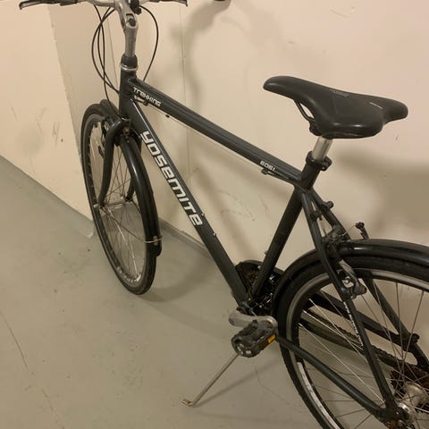 Yosemite Classic landsvägscykel för man med 28-tums hjul. Cykeln har svart ram, svart sadel och korg framtill i metallnät. Utrustad med pakethållare bak, skärmar och nav med 3 växlar (28" 3S-markering på ramen). Lämplig för pendling och vardagscykling på väg och cykelbana.