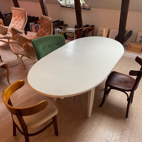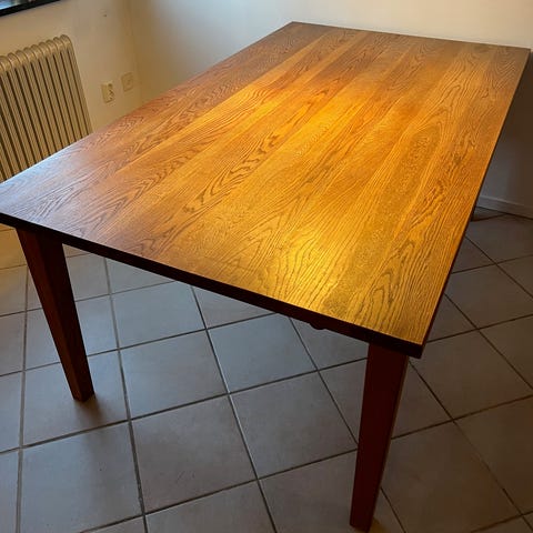 matbord i massiv Ek + tillhörande stolar