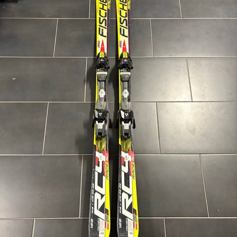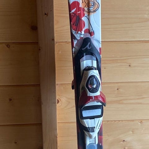 Salomon slalomskidor med bindningar och tillhörande pjäxor.